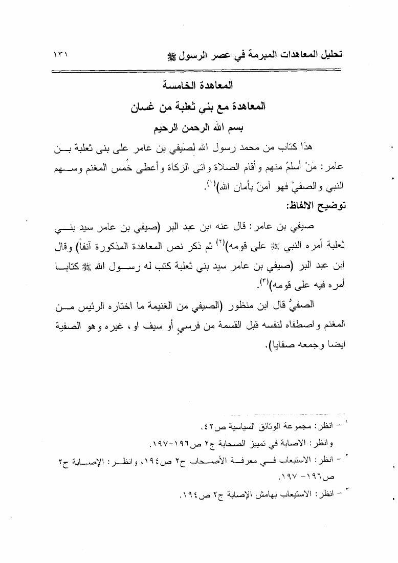 نام کتاب : أحكام المعاهدات فى الشريعة الإسلامية تحليل المعاهدات المبرمة في عصر الرسول صلى الله عليه وسلم نویسنده : خالد رشيد الجميلي جلد : 1 صفحه : 131