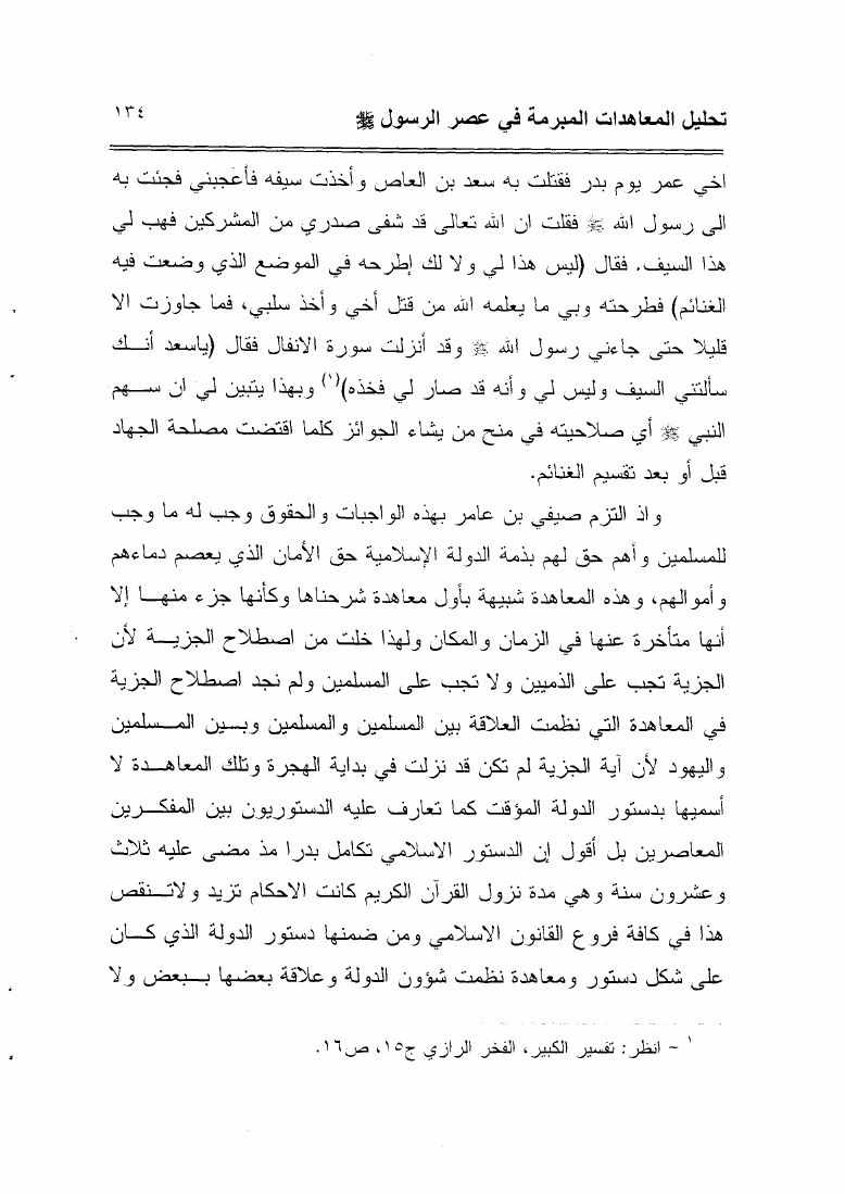 نام کتاب : أحكام المعاهدات فى الشريعة الإسلامية تحليل المعاهدات المبرمة في عصر الرسول صلى الله عليه وسلم نویسنده : خالد رشيد الجميلي جلد : 1 صفحه : 134