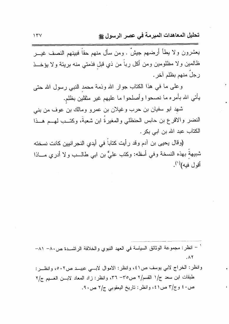 نام کتاب : أحكام المعاهدات فى الشريعة الإسلامية تحليل المعاهدات المبرمة في عصر الرسول صلى الله عليه وسلم نویسنده : خالد رشيد الجميلي جلد : 1 صفحه : 137