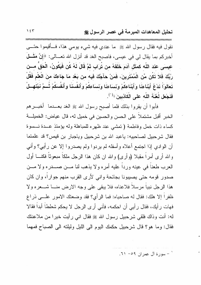 نام کتاب : أحكام المعاهدات فى الشريعة الإسلامية تحليل المعاهدات المبرمة في عصر الرسول صلى الله عليه وسلم نویسنده : خالد رشيد الجميلي جلد : 1 صفحه : 143