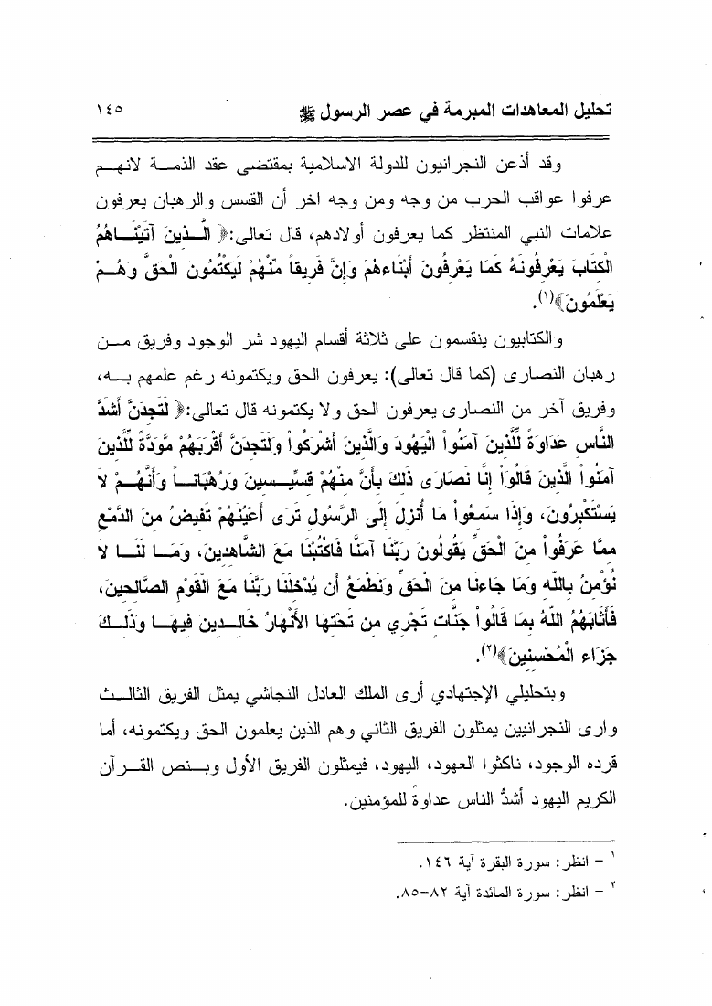نام کتاب : أحكام المعاهدات فى الشريعة الإسلامية تحليل المعاهدات المبرمة في عصر الرسول صلى الله عليه وسلم نویسنده : خالد رشيد الجميلي جلد : 1 صفحه : 145