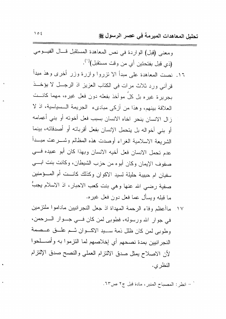 نام کتاب : أحكام المعاهدات فى الشريعة الإسلامية تحليل المعاهدات المبرمة في عصر الرسول صلى الله عليه وسلم نویسنده : خالد رشيد الجميلي جلد : 1 صفحه : 154