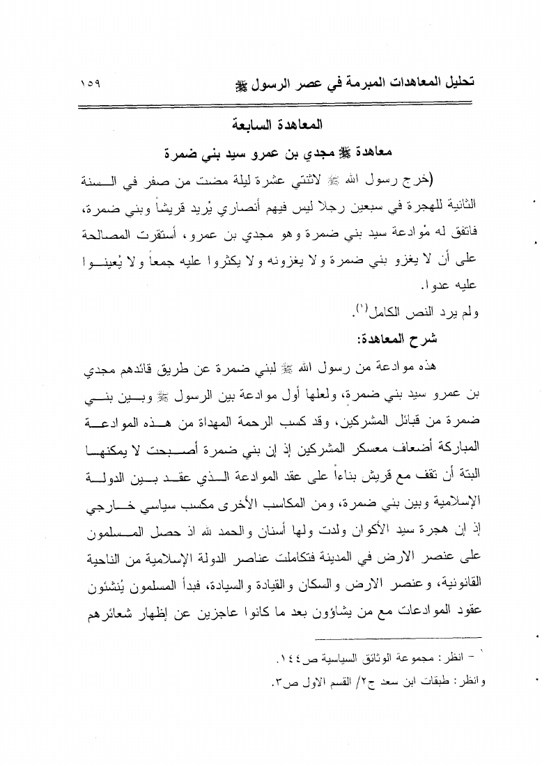 نام کتاب : أحكام المعاهدات فى الشريعة الإسلامية تحليل المعاهدات المبرمة في عصر الرسول صلى الله عليه وسلم نویسنده : خالد رشيد الجميلي جلد : 1 صفحه : 159