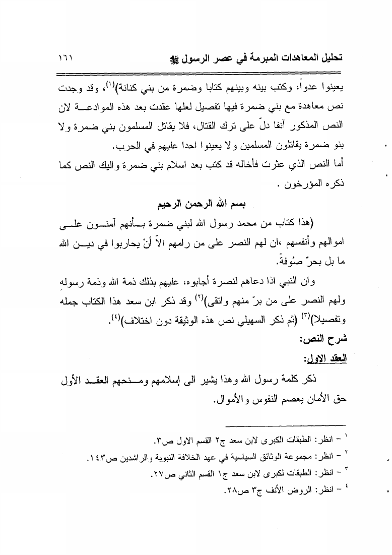 نام کتاب : أحكام المعاهدات فى الشريعة الإسلامية تحليل المعاهدات المبرمة في عصر الرسول صلى الله عليه وسلم نویسنده : خالد رشيد الجميلي جلد : 1 صفحه : 161