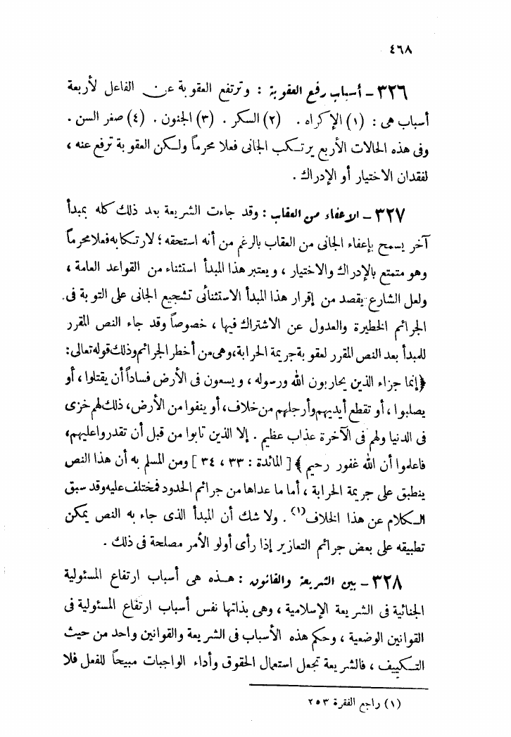التشريع الجنائي الإسلامي مقارناً بالقانون الوضعي
