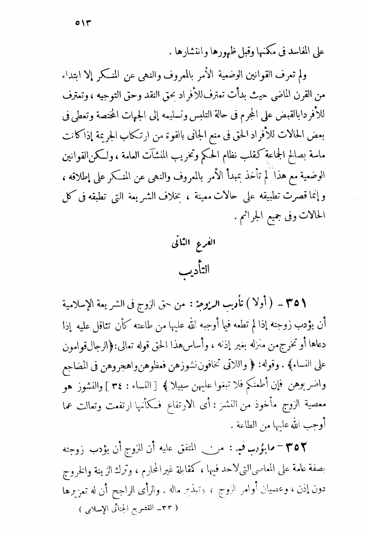 التشريع الجنائي الإسلامي مقارناً بالقانون الوضعي