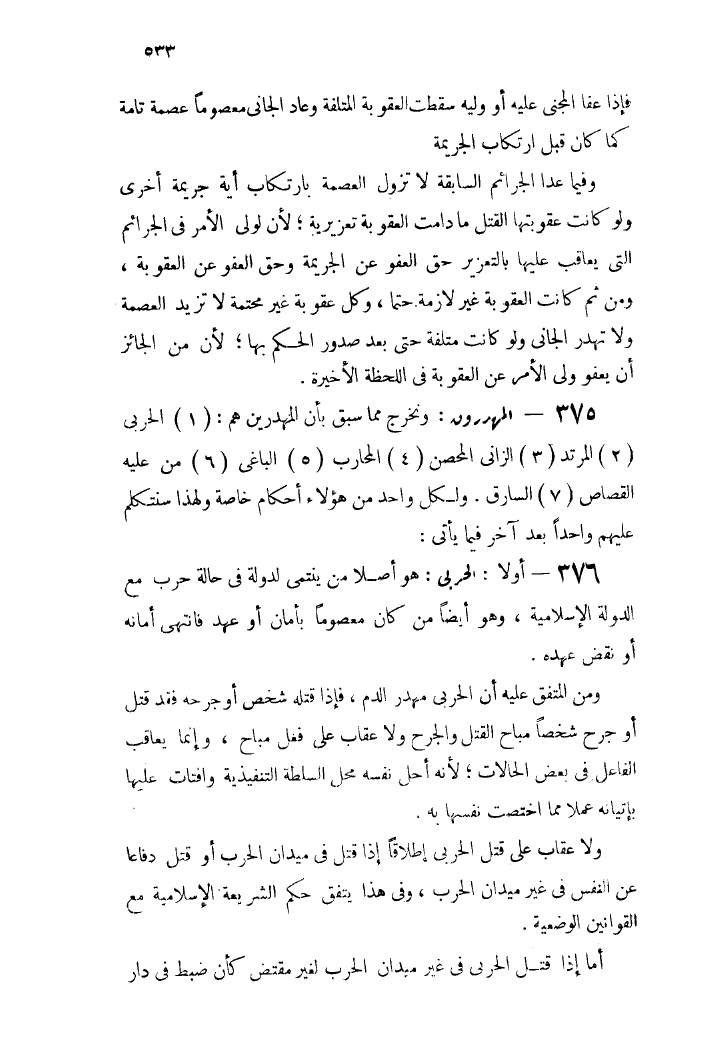التشريع الجنائي الإسلامي مقارناً بالقانون الوضعي