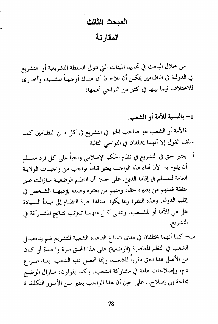 السلطة التشريعية في نظام الحكم الإسلامي والنظم المعاصرة (الوضعية) دراسة مقارنة