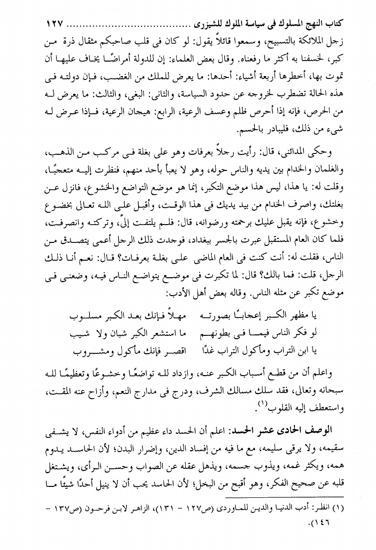السياسة أو الاشارة في تدبير الإمارة ويليه النهج المسلوك في سياسة الملوك ونهاية الرتبة في طلب الحسبة ويليه نهاية الرتبة في طلب الحسبة