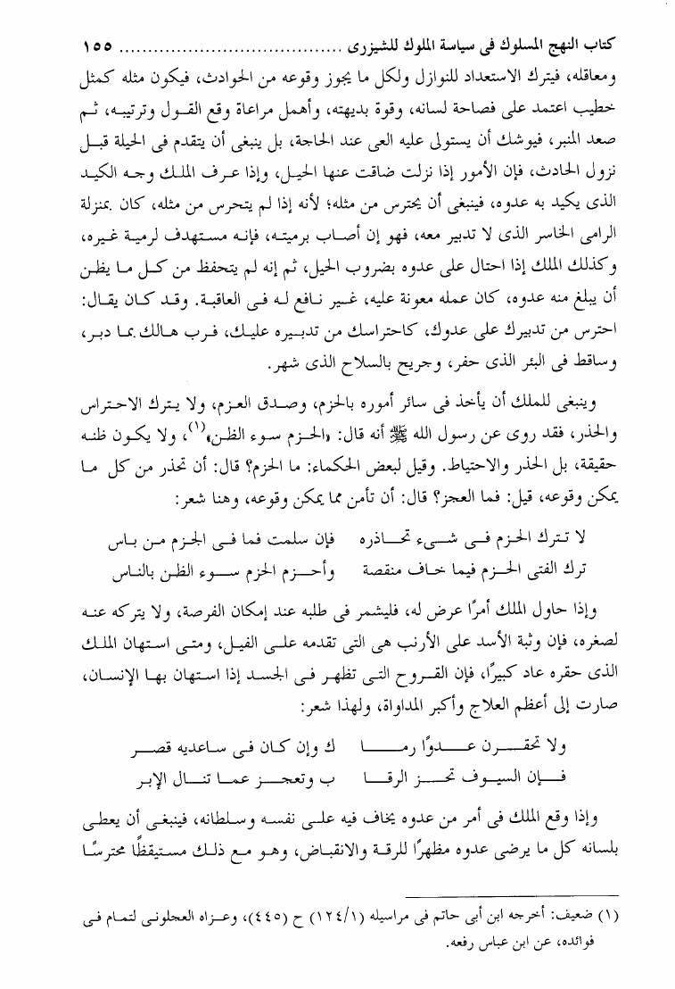 السياسة أو الاشارة في تدبير الإمارة ويليه النهج المسلوك في سياسة الملوك ونهاية الرتبة في طلب الحسبة ويليه نهاية الرتبة في طلب الحسبة