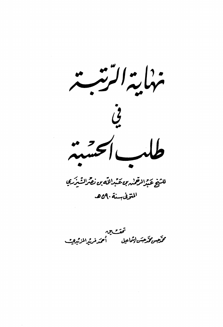 محمد بن الحسن المرادي الحضرمي - عبد الرحمن بن عبد الله بن نصر الشيزري - محمد أحمد بن بسام المحتسب
