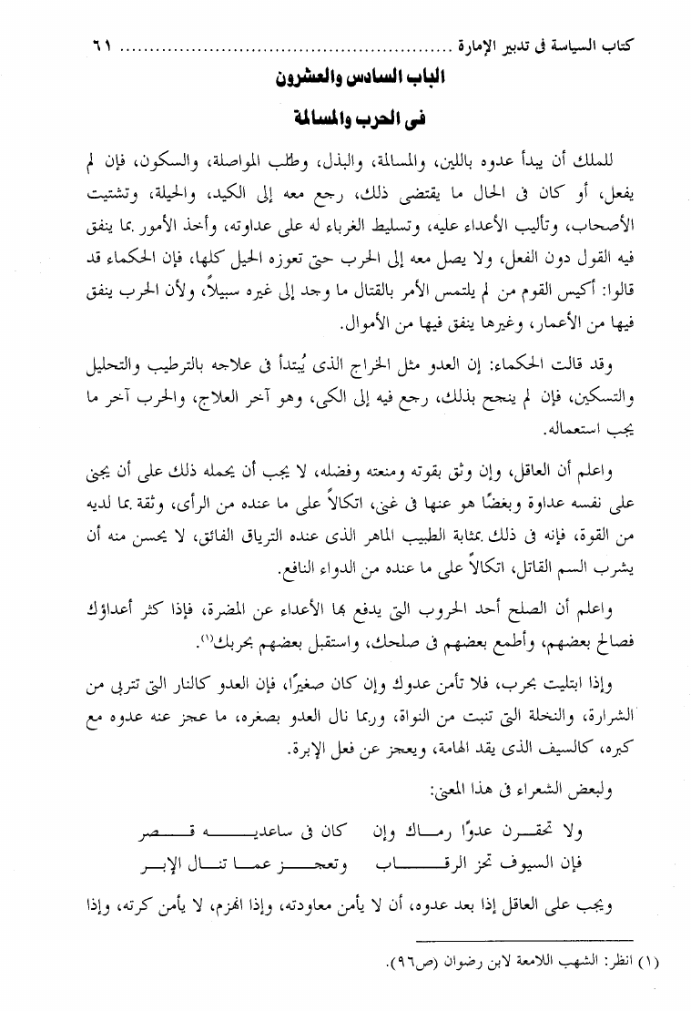 السياسة أو الاشارة في تدبير الإمارة ويليه النهج المسلوك في سياسة الملوك ونهاية الرتبة في طلب الحسبة ويليه نهاية الرتبة في طلب الحسبة
