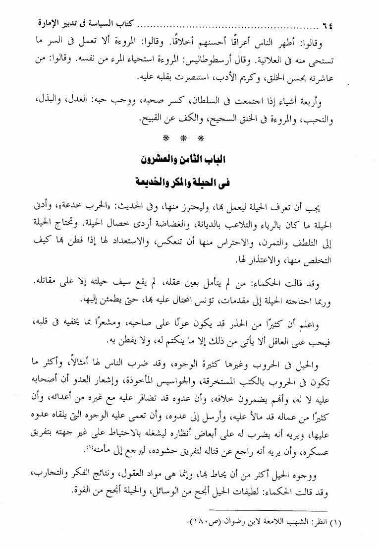 السياسة أو الاشارة في تدبير الإمارة ويليه النهج المسلوك في سياسة الملوك ونهاية الرتبة في طلب الحسبة ويليه نهاية الرتبة في طلب الحسبة