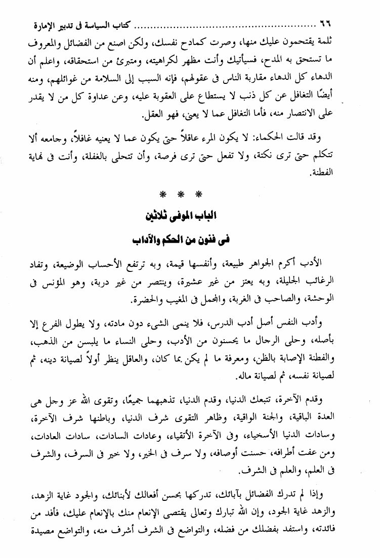 السياسة أو الاشارة في تدبير الإمارة ويليه النهج المسلوك في سياسة الملوك ونهاية الرتبة في طلب الحسبة ويليه نهاية الرتبة في طلب الحسبة