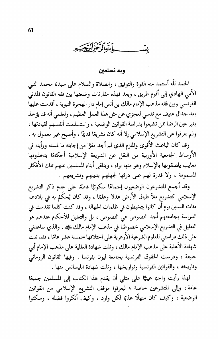 نام کتاب : المقارنات التشريعية بين القوانين الوضعية المدنية والتشريع الإسلامي مقارنة بين فقه القانون الفرنسي ومذهب الإمام مالك نویسنده : سيد عبد الله علي حسين جلد : 1 صفحه : 61