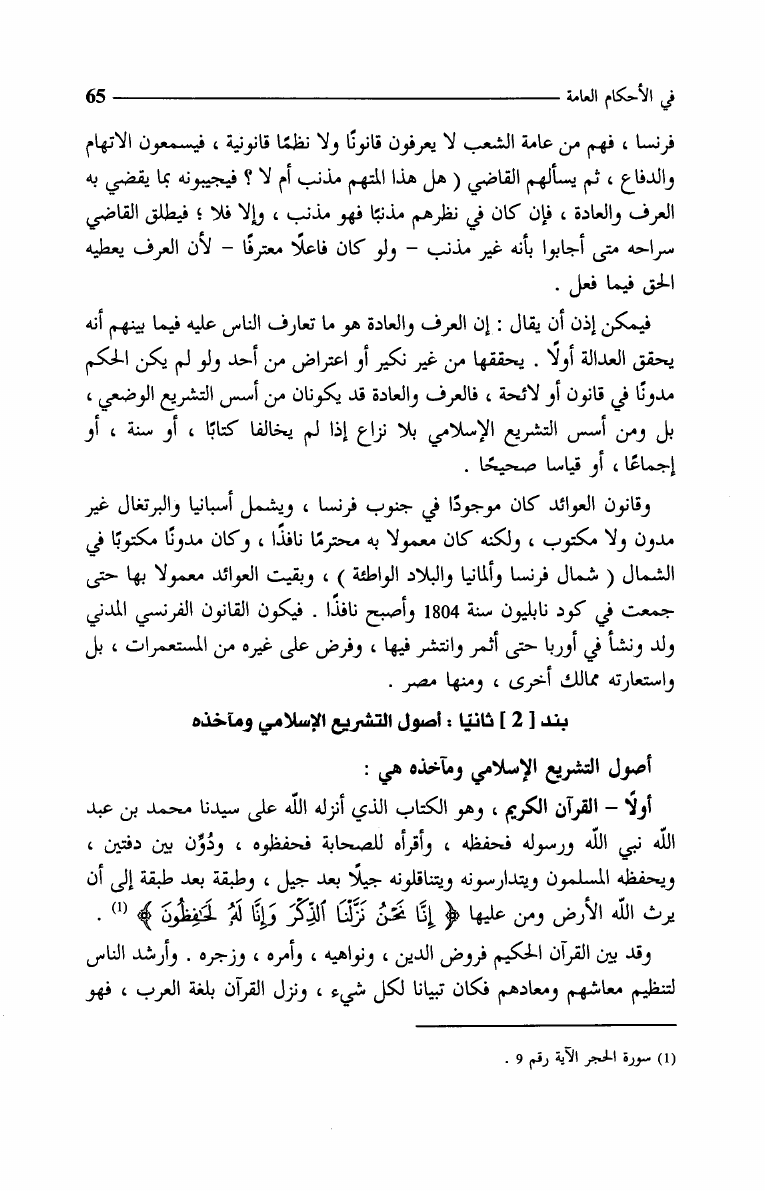 نام کتاب : المقارنات التشريعية بين القوانين الوضعية المدنية والتشريع الإسلامي مقارنة بين فقه القانون الفرنسي ومذهب الإمام مالك نویسنده : سيد عبد الله علي حسين جلد : 1 صفحه : 65