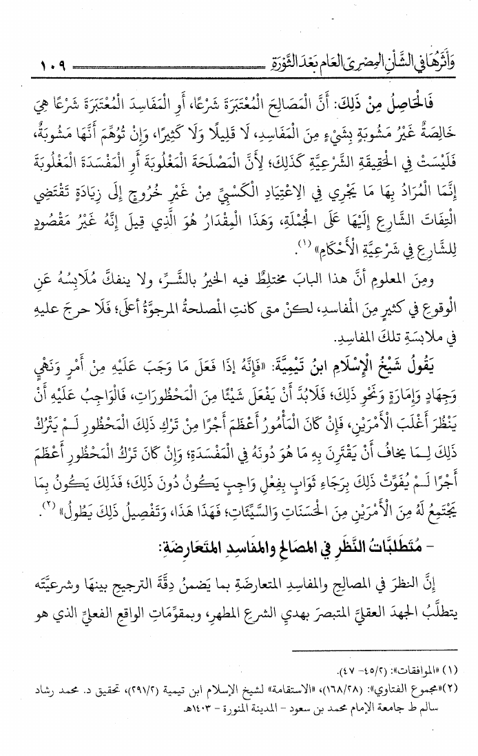 الموازنة بين المصالح والمفاسد وأثرها في الشأن المصري العام بعد الثورة