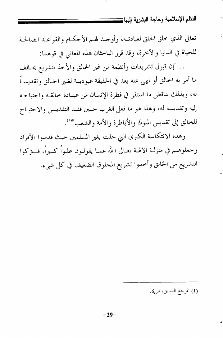 النظم الإسلامية وحاجة البشرية إليها