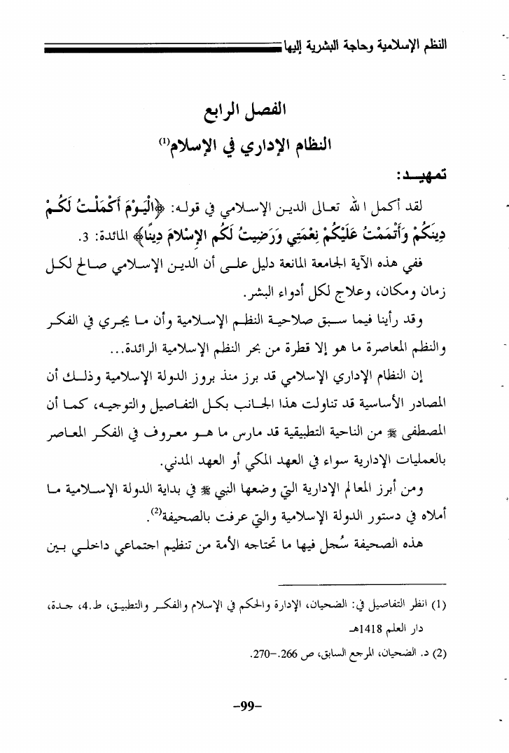 النظم الإسلامية وحاجة البشرية إليها