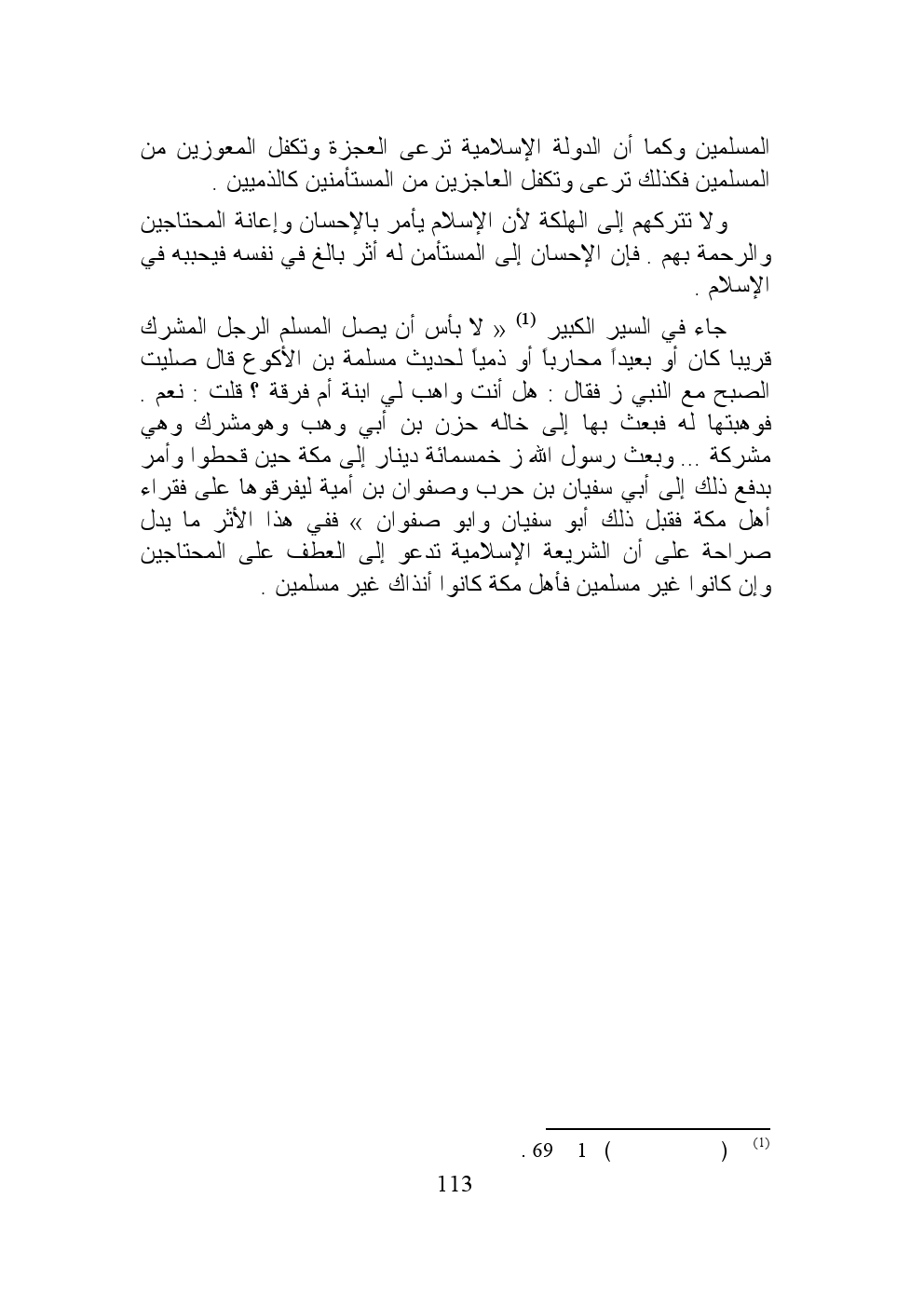 نام کتاب : حقوق غير المسلمين في الدولة الإسلامية وحمايتها الجنائية وتطبيقاتها في المملكة العربية السعودية نویسنده : فهد محمد علي المسعود جلد : 1 صفحه : 113