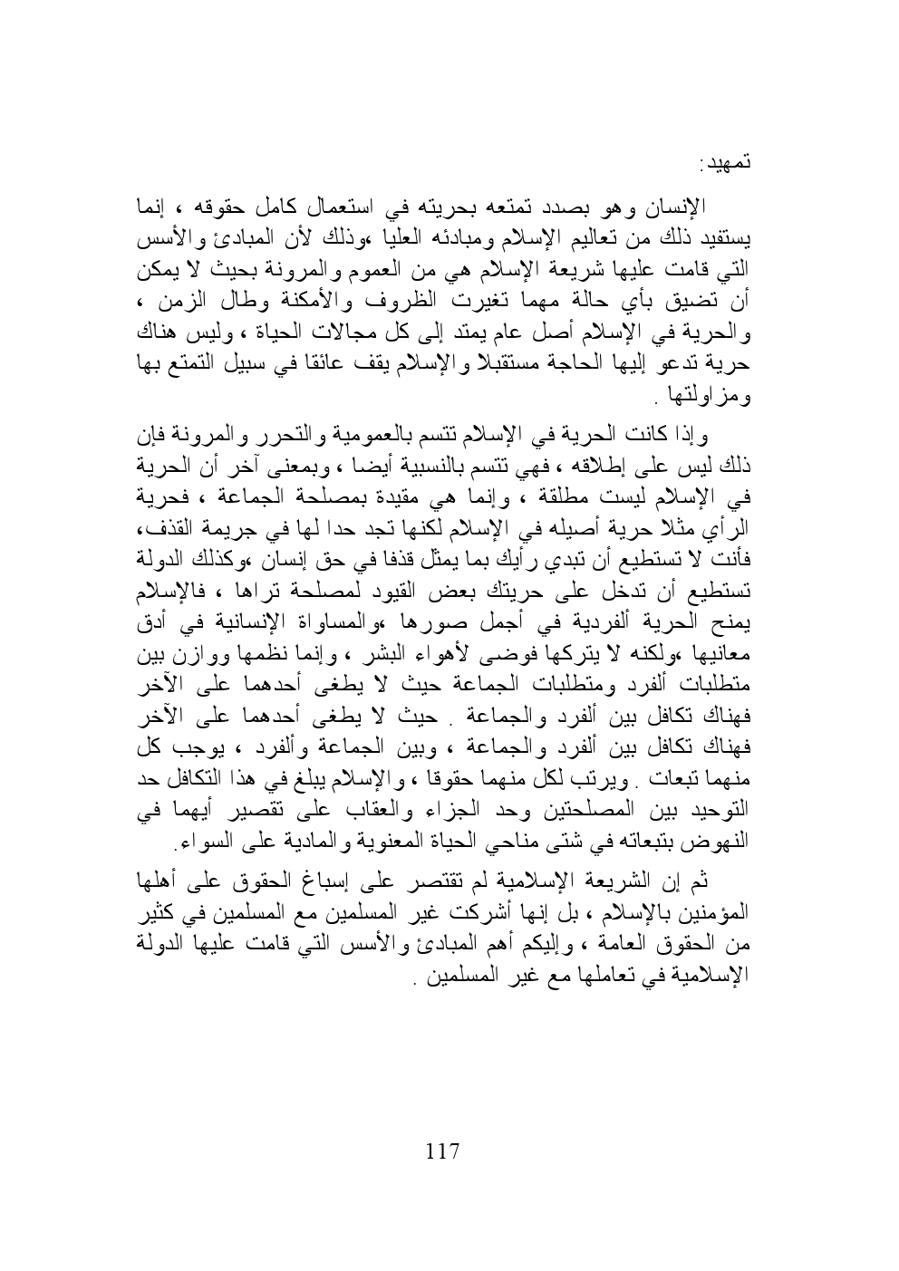 نام کتاب : حقوق غير المسلمين في الدولة الإسلامية وحمايتها الجنائية وتطبيقاتها في المملكة العربية السعودية نویسنده : فهد محمد علي المسعود جلد : 1 صفحه : 117