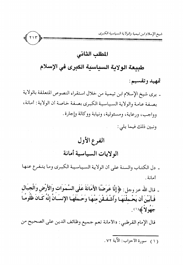 شيخ الإسلام ابن تيمية والولاية السياسية الكبرى في الإسلام