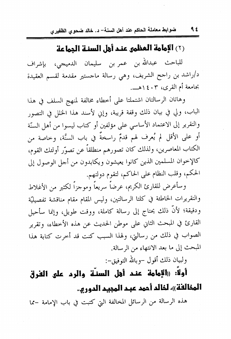 ضوابط معاملة الحاكم عند أهل السنة والجماعة وأثرها على الأمة