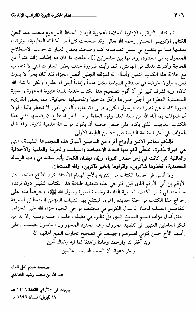 نظام الحكومة النبوية المسمى التراتيب الإدارية