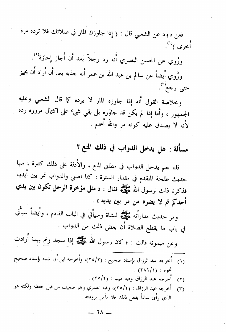 أحكام السترة في مكة وغيرها وحكم المرور بين يدي المصلي