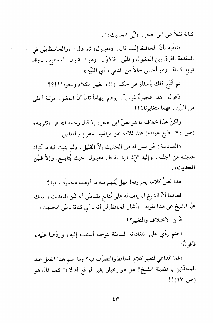نام کتاب : إحكام المباني في نقض وصول التهاني وكشف ما فيه من مغالطات المعاني ويتضمن تاريخ السبحة وحكمها نویسنده : علي بن حسن بن علي الحلبي الأثري جلد : 1 صفحه : 43