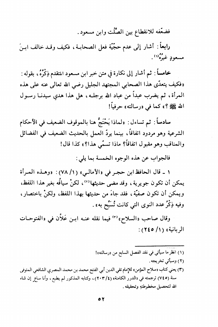 نام کتاب : إحكام المباني في نقض وصول التهاني وكشف ما فيه من مغالطات المعاني ويتضمن تاريخ السبحة وحكمها نویسنده : علي بن حسن بن علي الحلبي الأثري جلد : 1 صفحه : 52