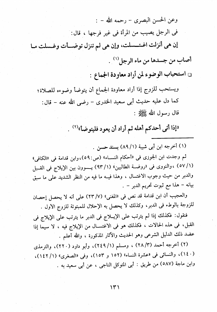 نام کتاب : آداب الخطبة والزفاف من الكتاب وصحيح السنة ومعه بحث مهم في جواز تحلي النساء بالذهب المحلق وغيره نویسنده : عمرو عبد المنعم سليم جلد : 1 صفحه : 131