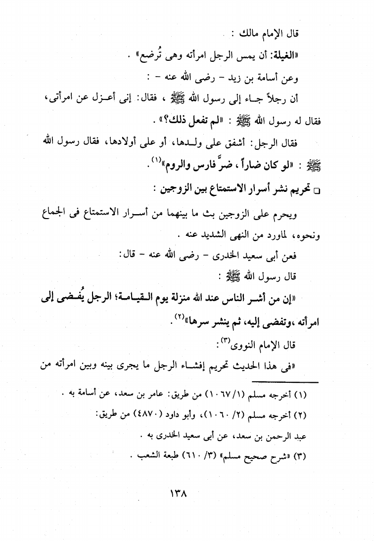 نام کتاب : آداب الخطبة والزفاف من الكتاب وصحيح السنة ومعه بحث مهم في جواز تحلي النساء بالذهب المحلق وغيره نویسنده : عمرو عبد المنعم سليم جلد : 1 صفحه : 138