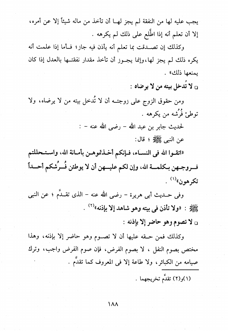 نام کتاب : آداب الخطبة والزفاف من الكتاب وصحيح السنة ومعه بحث مهم في جواز تحلي النساء بالذهب المحلق وغيره نویسنده : عمرو عبد المنعم سليم جلد : 1 صفحه : 188