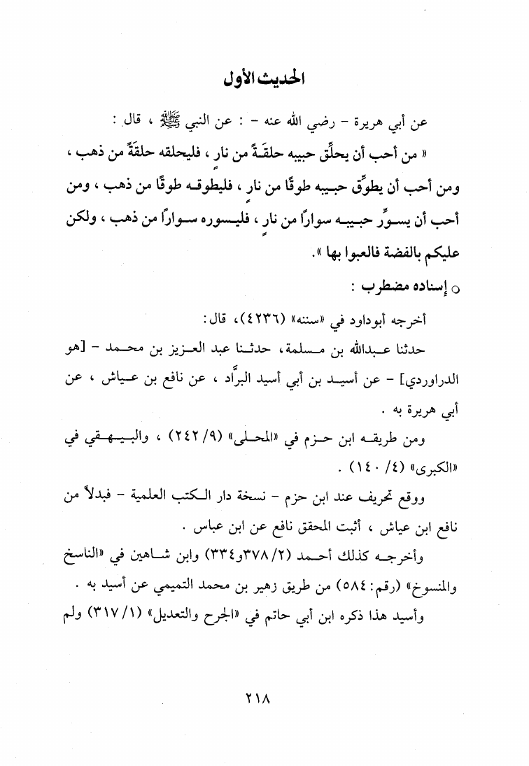نام کتاب : آداب الخطبة والزفاف من الكتاب وصحيح السنة ومعه بحث مهم في جواز تحلي النساء بالذهب المحلق وغيره نویسنده : عمرو عبد المنعم سليم جلد : 1 صفحه : 218