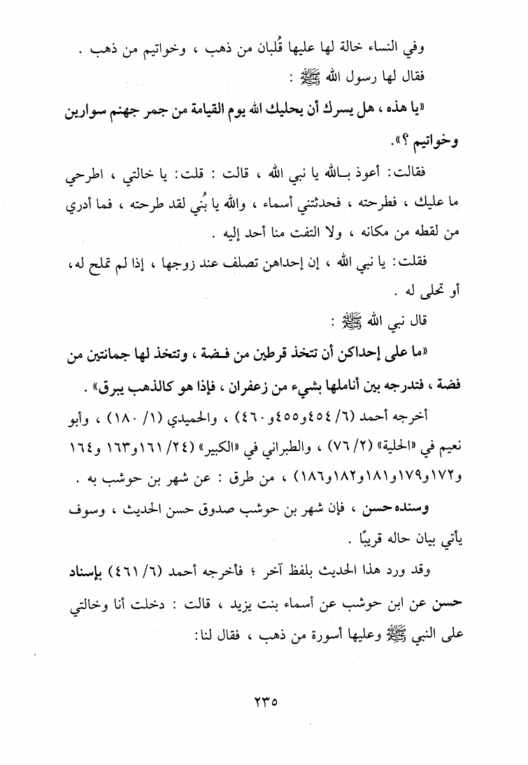 نام کتاب : آداب الخطبة والزفاف من الكتاب وصحيح السنة ومعه بحث مهم في جواز تحلي النساء بالذهب المحلق وغيره نویسنده : عمرو عبد المنعم سليم جلد : 1 صفحه : 235
