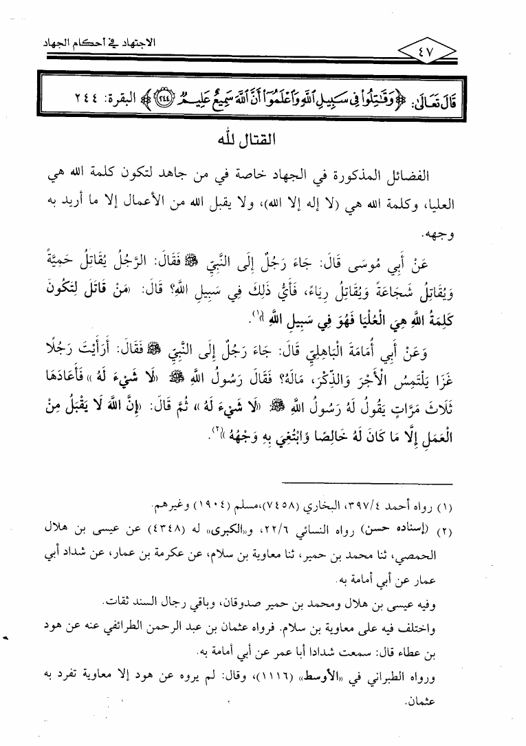 الإجتهاد في أحكام الجهاد دراسة فقهية حديثية