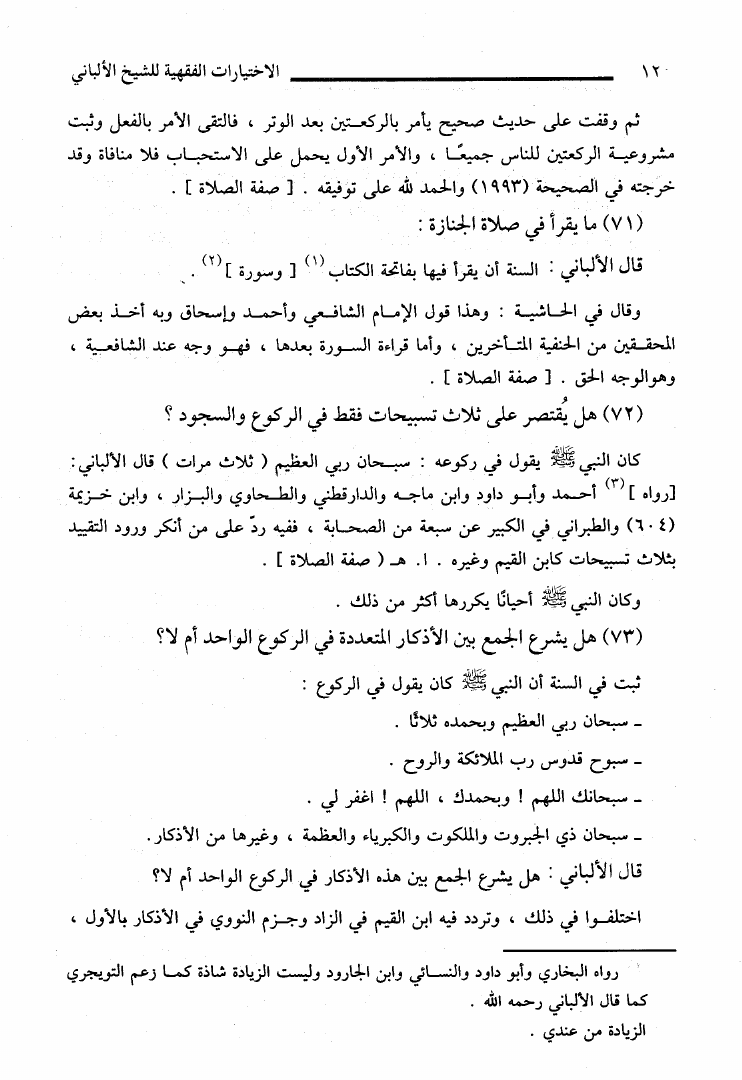 الإختيارات الفقهية للإمام الألباني