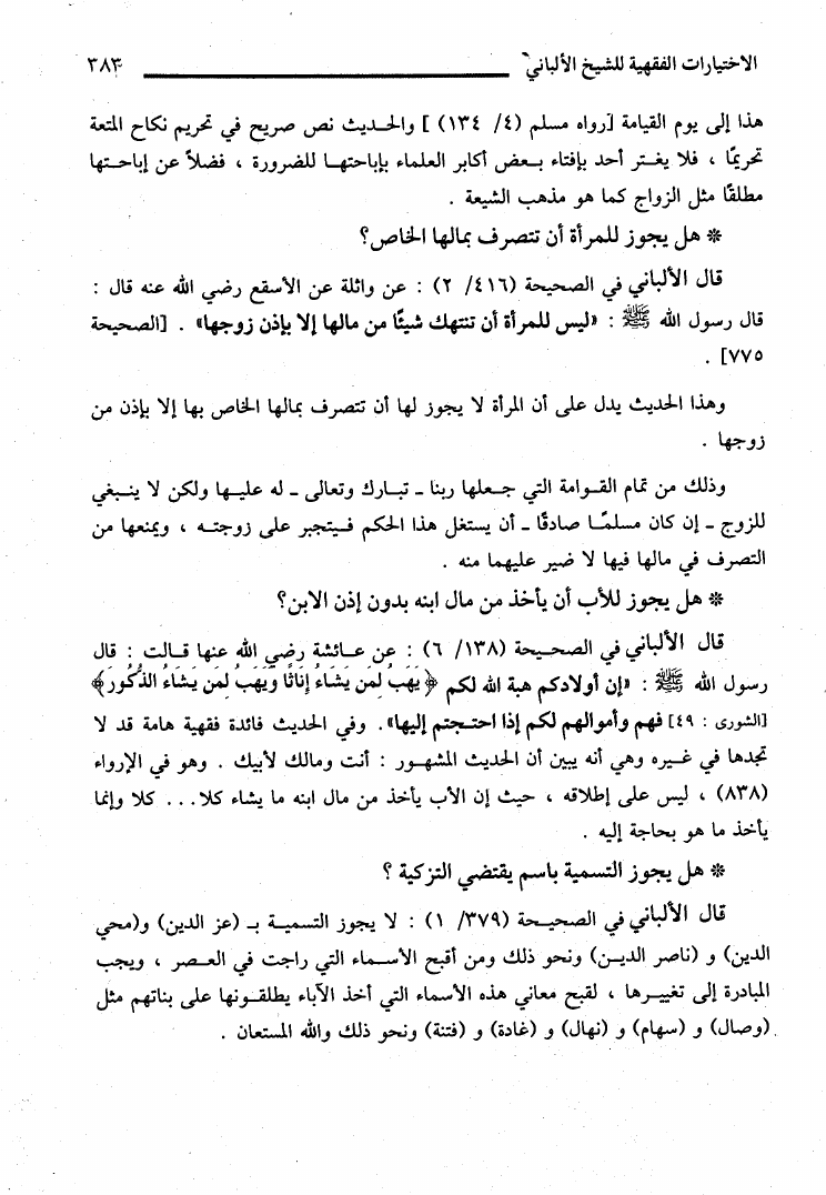 الإختيارات الفقهية للإمام الألباني