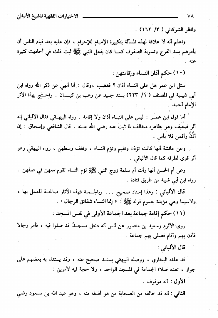 الإختيارات الفقهية للإمام الألباني