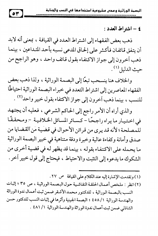 البصمة الوراثية ومدى مشروعية استخدامها في النسب والجناية