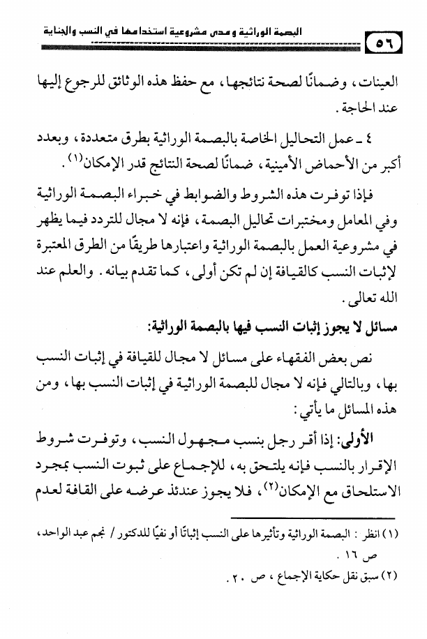 البصمة الوراثية ومدى مشروعية استخدامها في النسب والجناية
