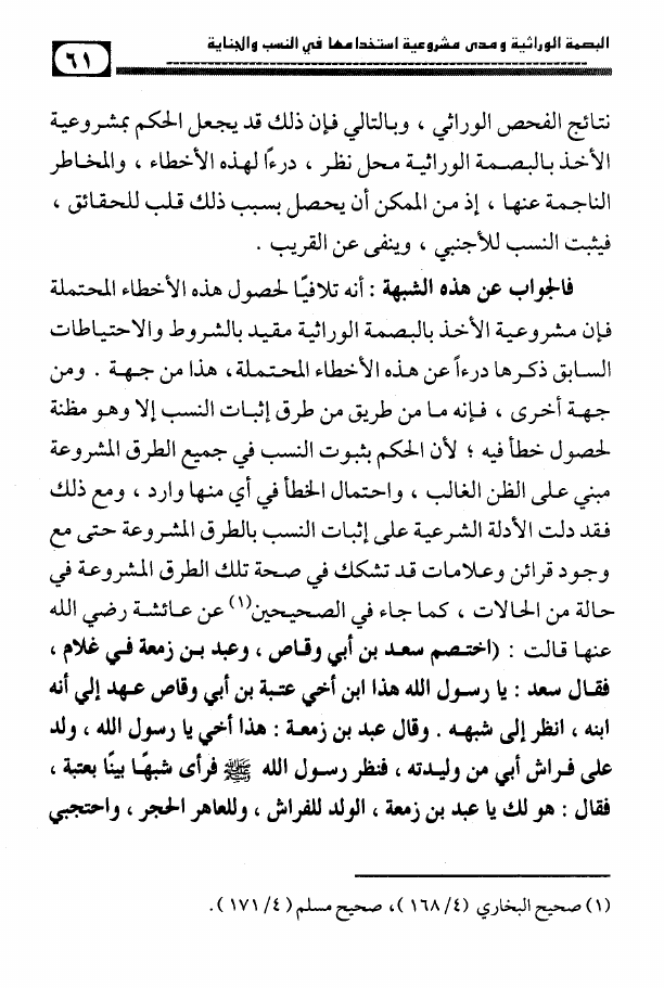 البصمة الوراثية ومدى مشروعية استخدامها في النسب والجناية