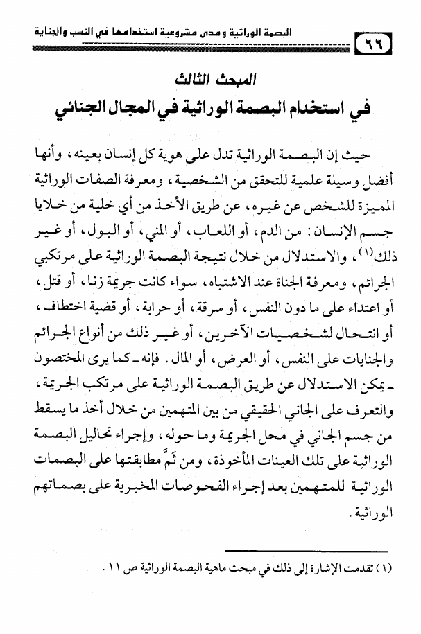البصمة الوراثية ومدى مشروعية استخدامها في النسب والجناية