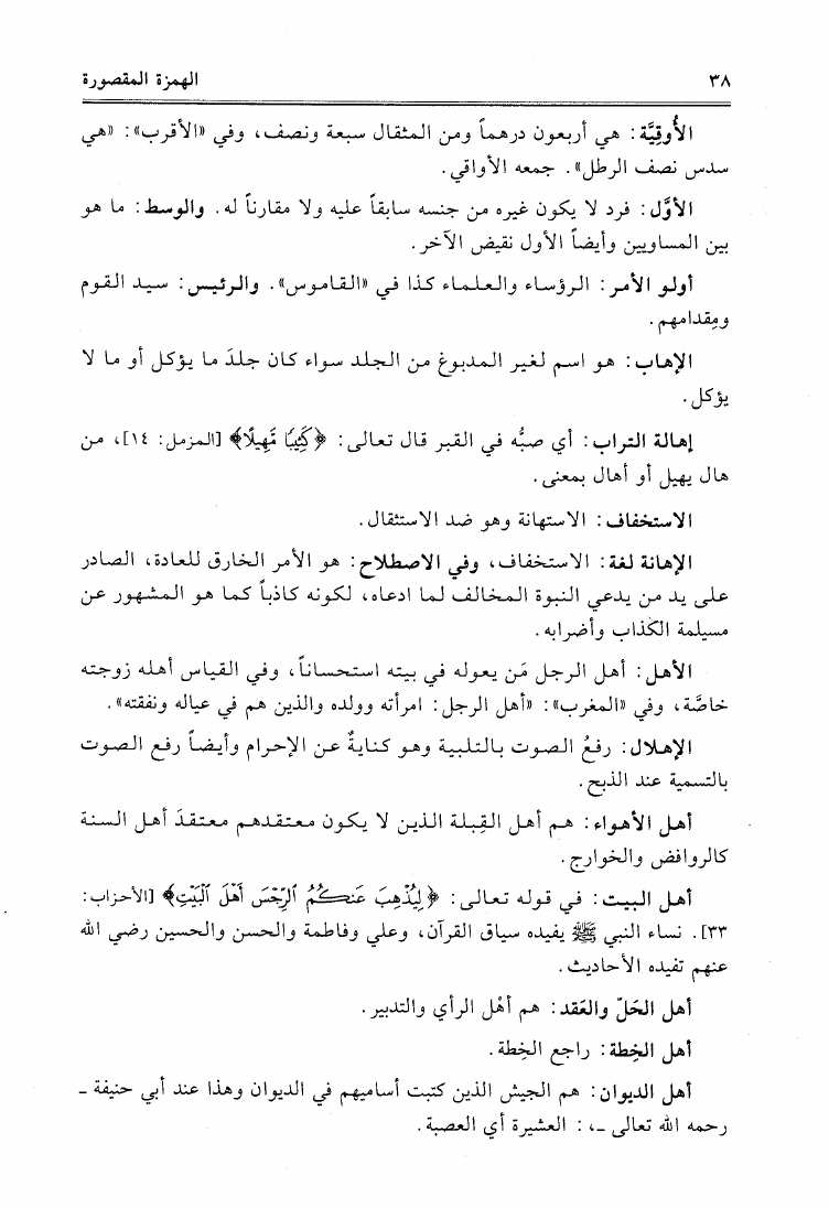 نام کتاب : التعريفات الفقهية معجم يشرح الألفاظ المصطلح عليها بين الفقهاء والأصوليين وغيرهم من العلماء نویسنده : محمد عميم الإحسان المجددي البركتي جلد : 1 صفحه : 38