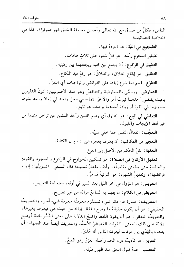 نام کتاب : التعريفات الفقهية معجم يشرح الألفاظ المصطلح عليها بين الفقهاء والأصوليين وغيرهم من العلماء نویسنده : محمد عميم الإحسان المجددي البركتي جلد : 1 صفحه : 58