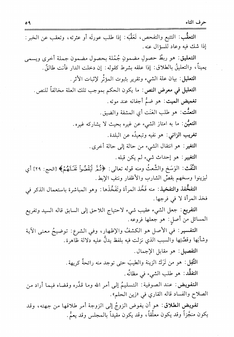 نام کتاب : التعريفات الفقهية معجم يشرح الألفاظ المصطلح عليها بين الفقهاء والأصوليين وغيرهم من العلماء نویسنده : محمد عميم الإحسان المجددي البركتي جلد : 1 صفحه : 59