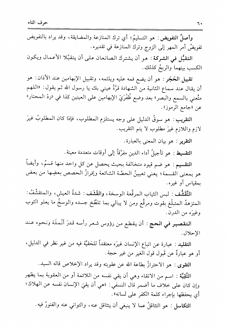 نام کتاب : التعريفات الفقهية معجم يشرح الألفاظ المصطلح عليها بين الفقهاء والأصوليين وغيرهم من العلماء نویسنده : محمد عميم الإحسان المجددي البركتي جلد : 1 صفحه : 60