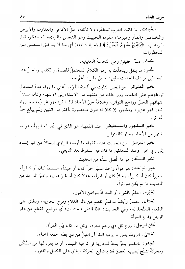 نام کتاب : التعريفات الفقهية معجم يشرح الألفاظ المصطلح عليها بين الفقهاء والأصوليين وغيرهم من العلماء نویسنده : محمد عميم الإحسان المجددي البركتي جلد : 1 صفحه : 85
