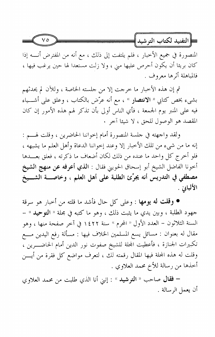 التفنيد لكتاب الترشيد وهو تعزيز الرد على من رمي الشيخ الألباني رحمه الله بالتساهل